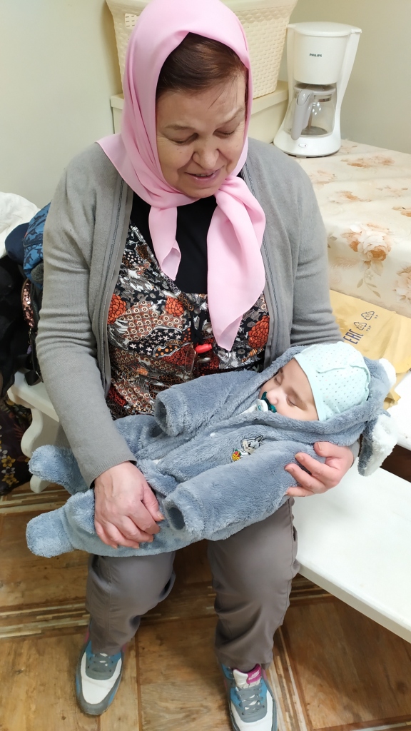 Пока мамы кушают, наш волонтер-юрист Татьяна Николаевна на поприще няни.